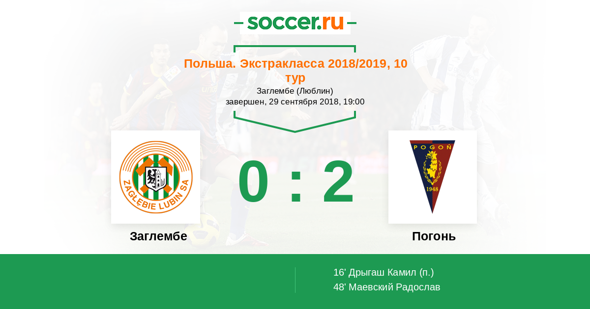 Протокол матча Заглембе против Погонь