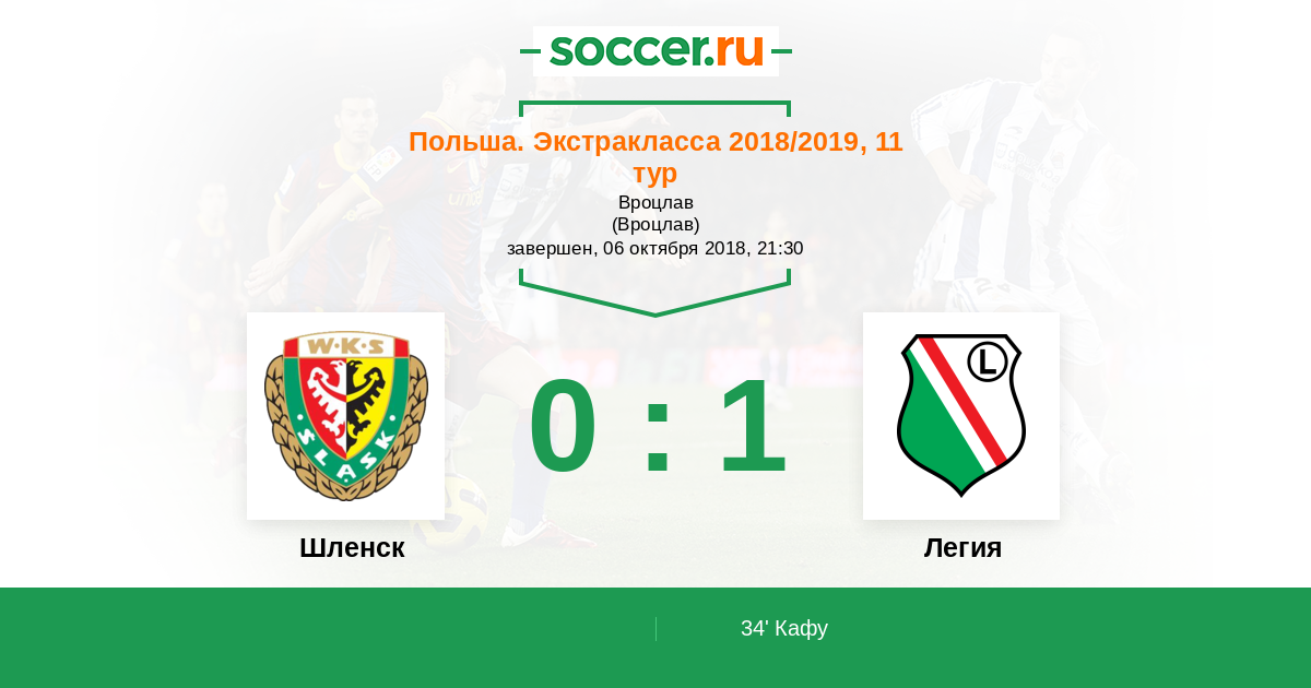 Протокол матча Шленск против Легия
