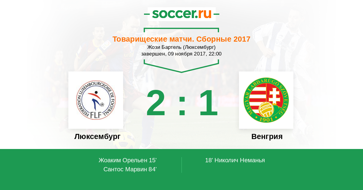 Протокол матча Люксембург против Венгрия