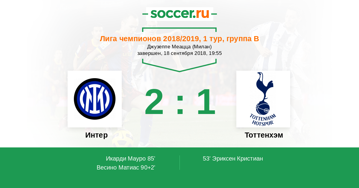 А вообще мне хотелось вашей победы, как говорится, своя курочка ближе к телу, чем чужая картонная коробка. Я даже было думал раздавите Интер, но... проявилась главная слабость вашей команды.