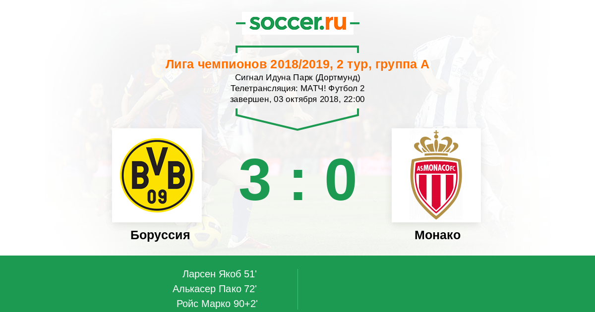 Протокол матча Боруссия против Монако