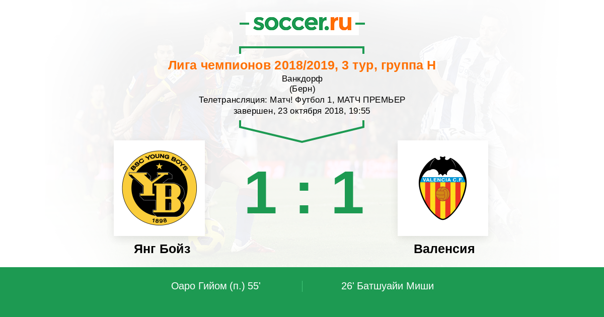 Протокол матча Янг Бойз против Валенсия