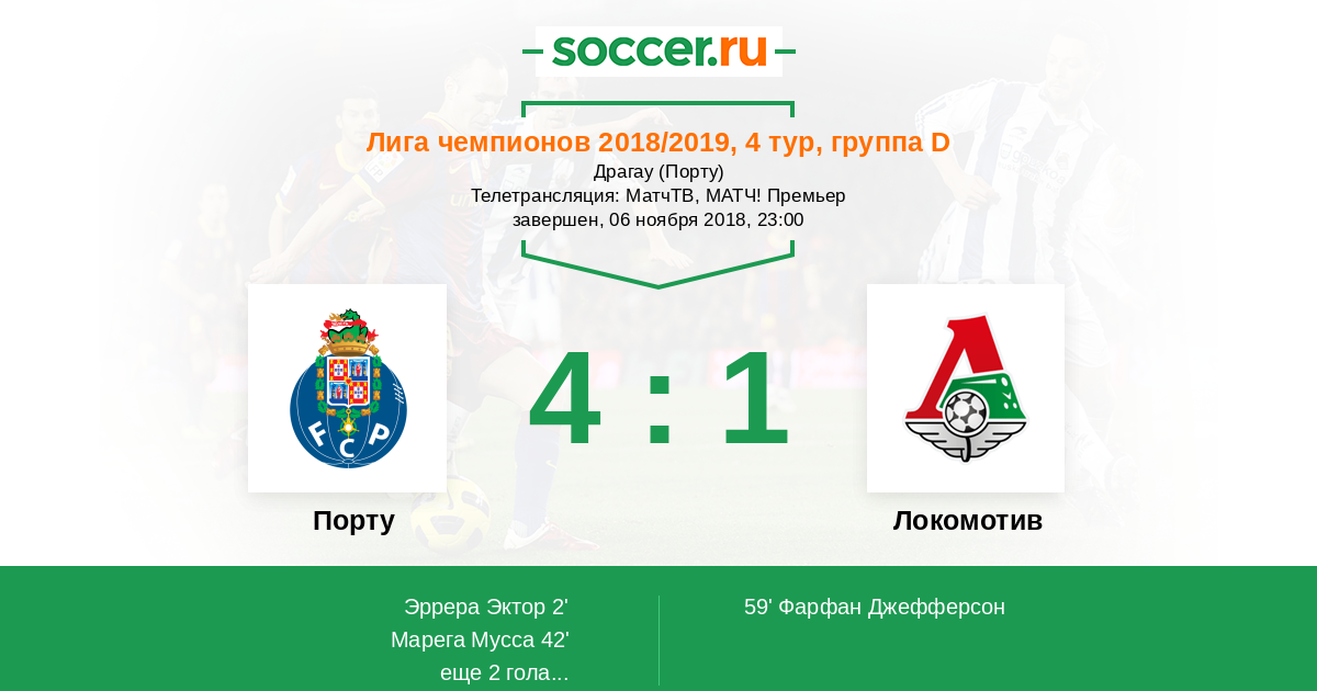 Протокол матча Порту против Локомотив