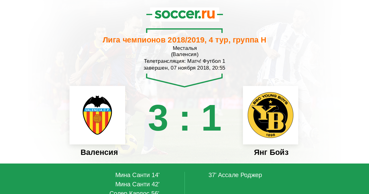 56' (3:1) Солер Карлос (8) (Родриго (19))