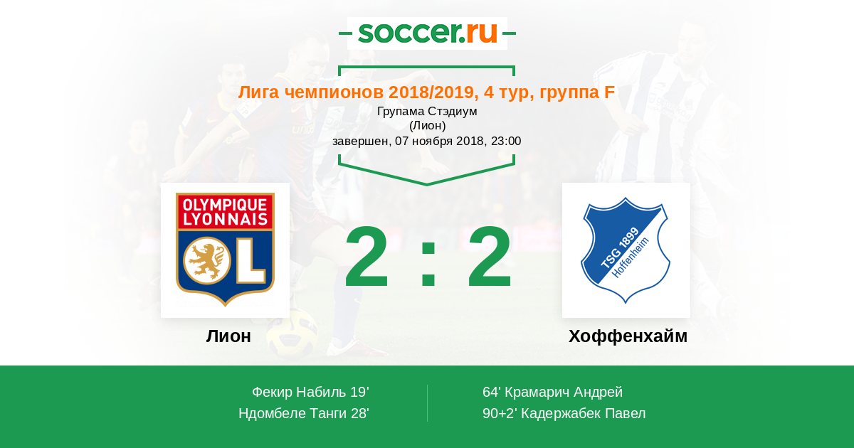 Протокол матча Лион против Хоффенхайм