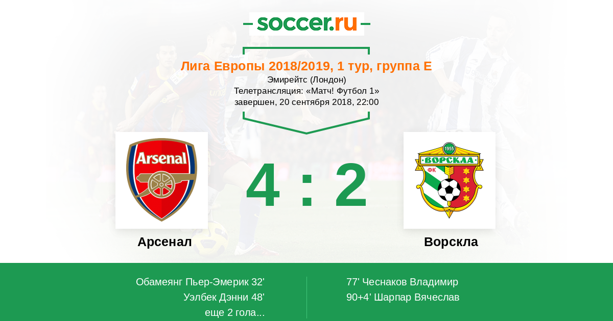 Протокол матча Арсенал против Ворскла