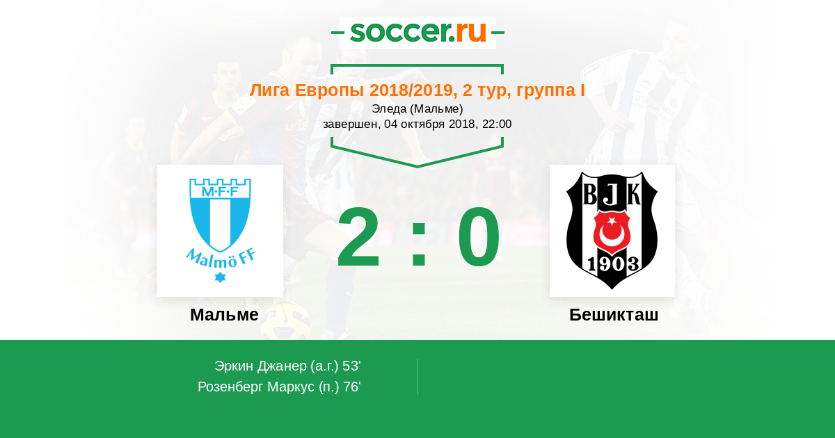 Протокол матча Мальме против Бешикташ