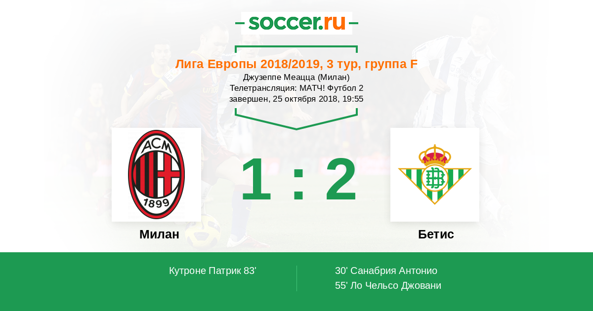 Протокол матча Милан против Бетис