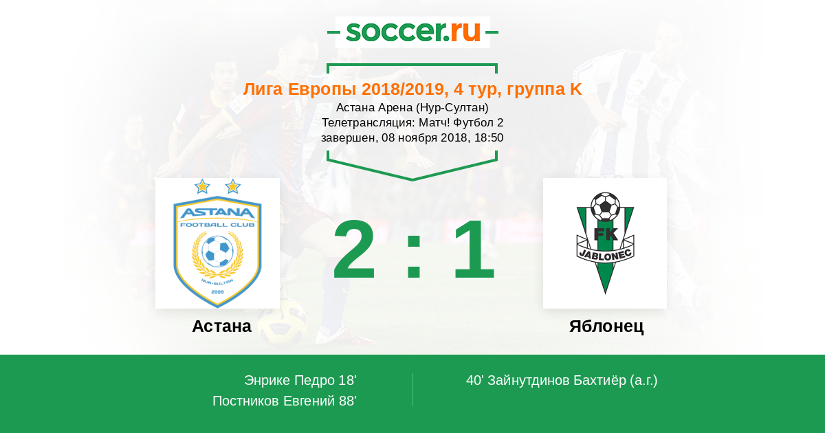 Протокол матча Астана против Яблонец
