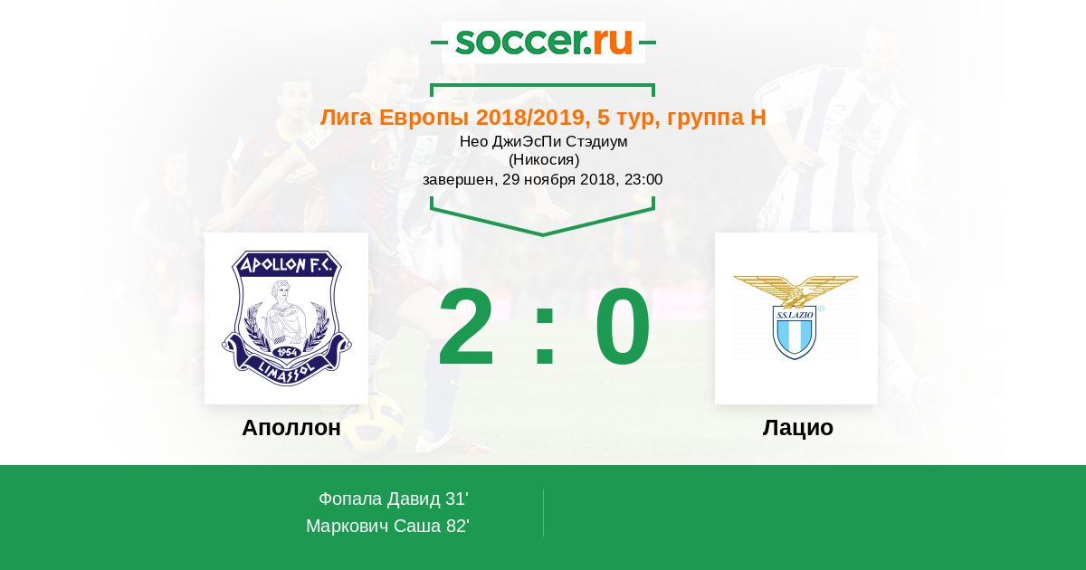 Протокол матча Аполлон против Лацио