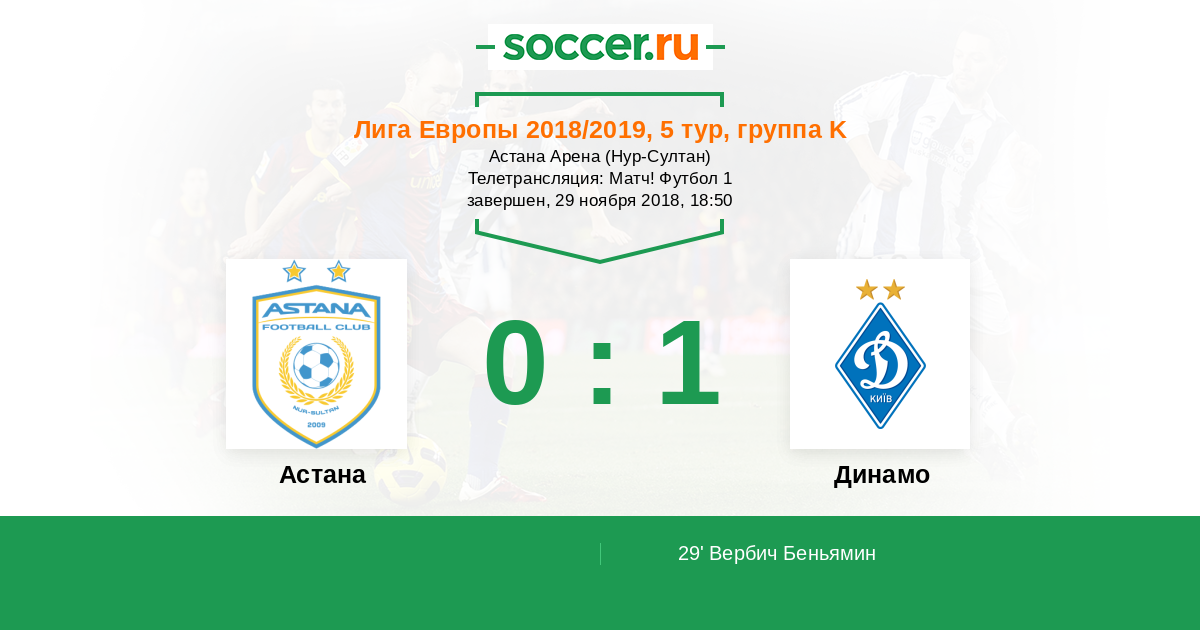 Протокол матча Астана против Динамо