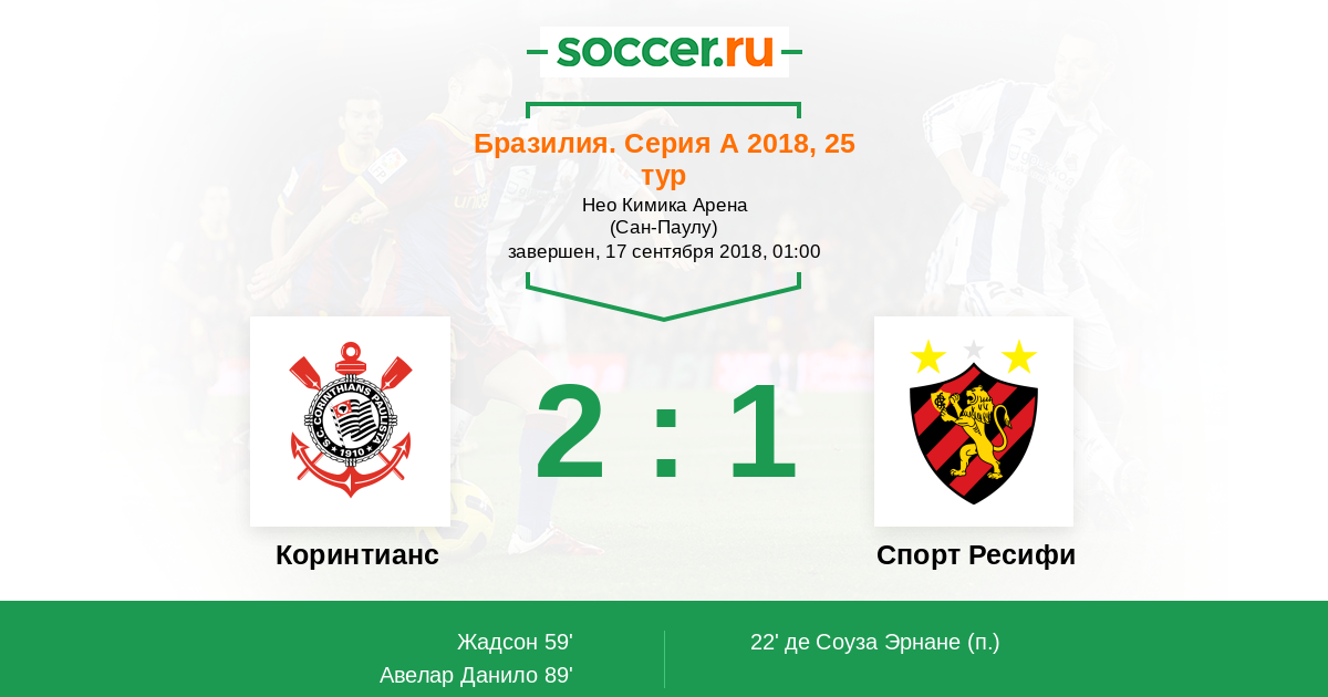 Протокол матча Коринтианс против Спорт Ресифи