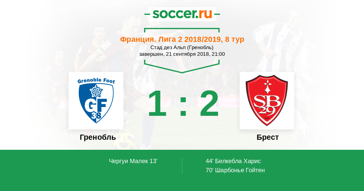 Протокол матча Гренобль против Брест