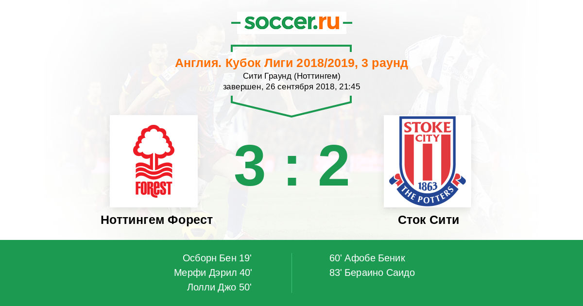 Протокол матча Ноттингем Форест против Сток Сити