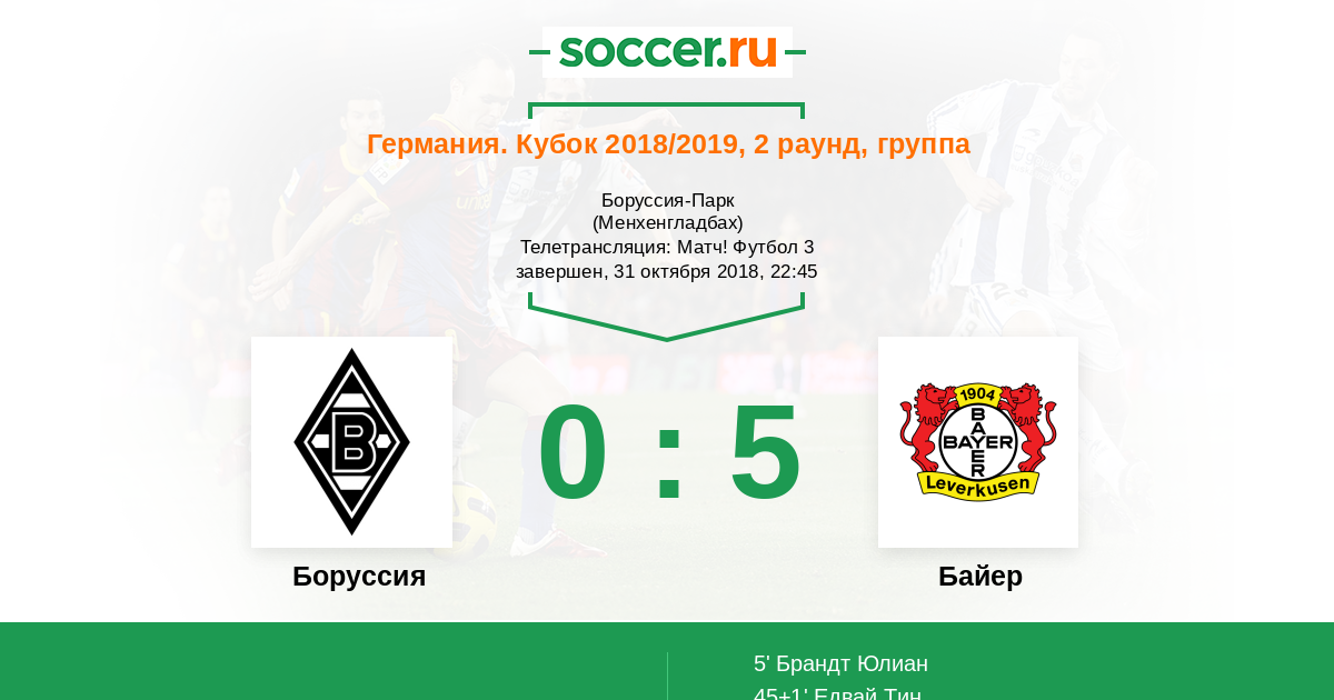 Протокол матча Боруссия против Байер