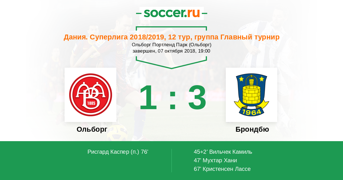Протокол матча Ольборг против Брондбю