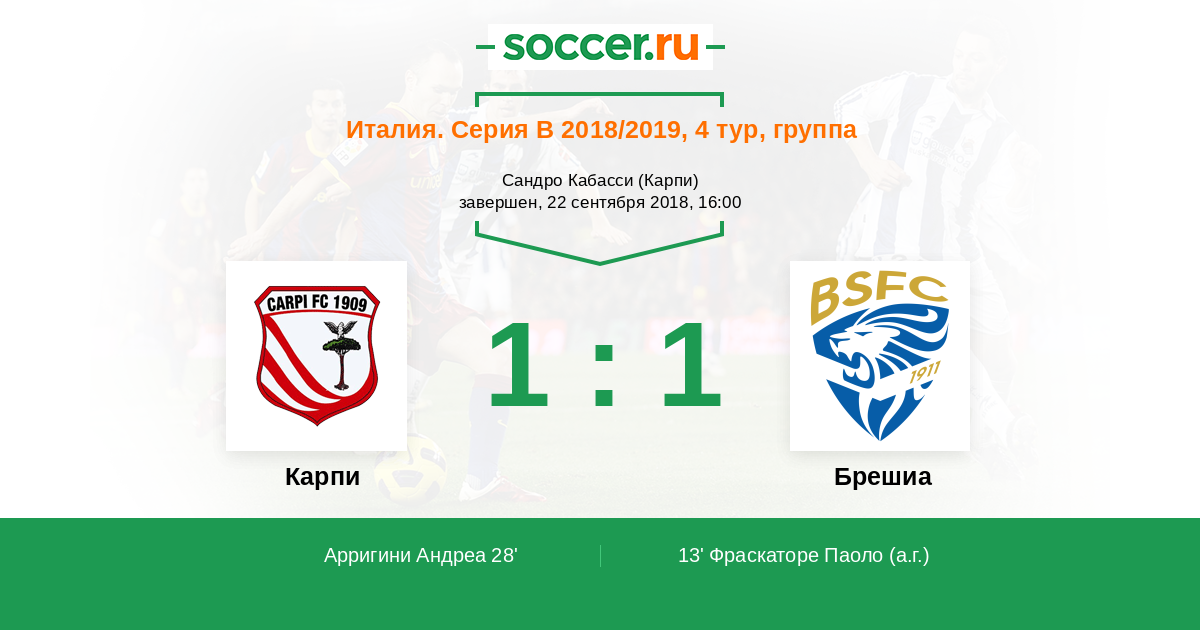 Протокол матча Карпи против Брешиа