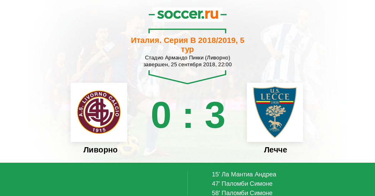 Протокол матча Ливорно против Лечче