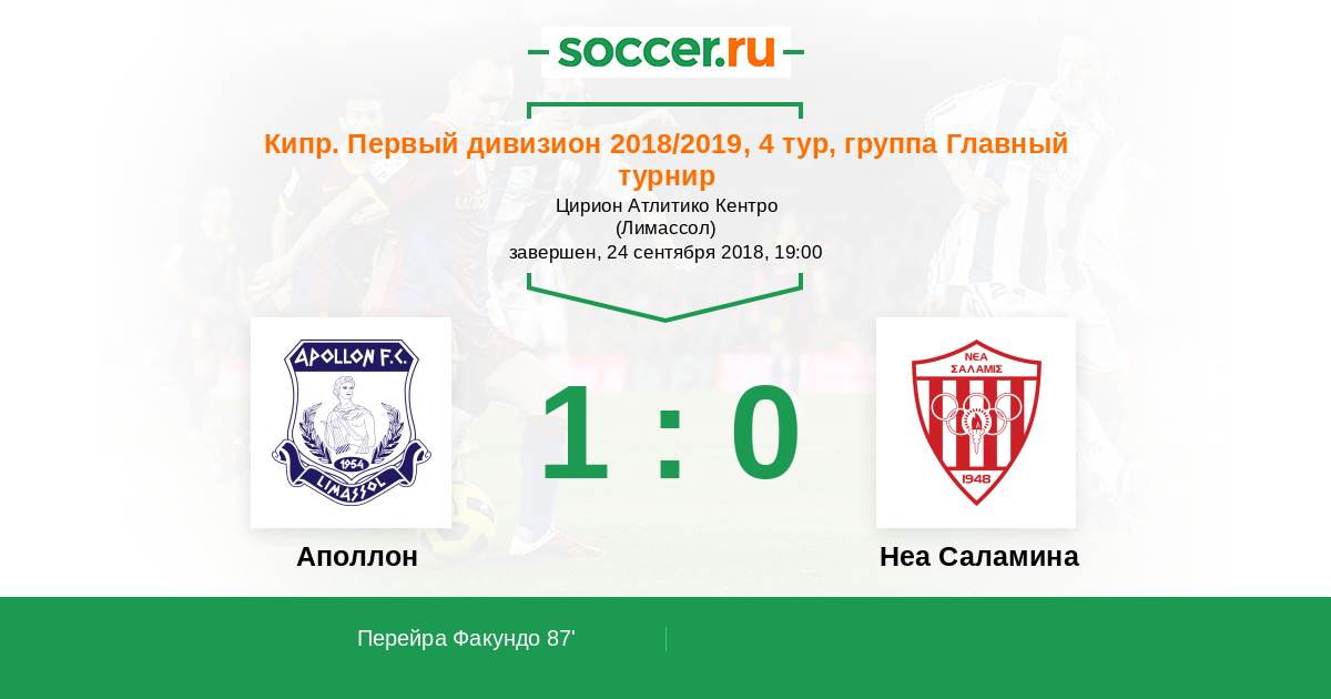 Протокол матча Аполлон против Неа Саламина