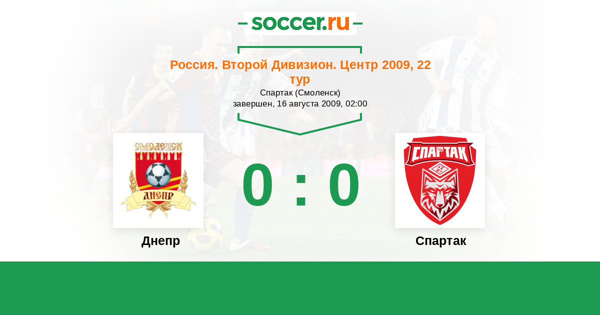 Россия. Вторая лига. Группа 3 17.05.2009 Спартак Логотип футбольный клуб Спартак (Тамбов) 1:1 Логотип футбольный клуб Днепр (Смоленск) Днепр
