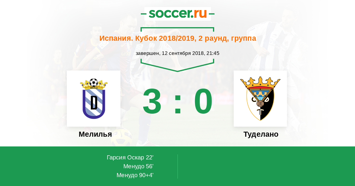 Протокол матча Мелилья против Туделано