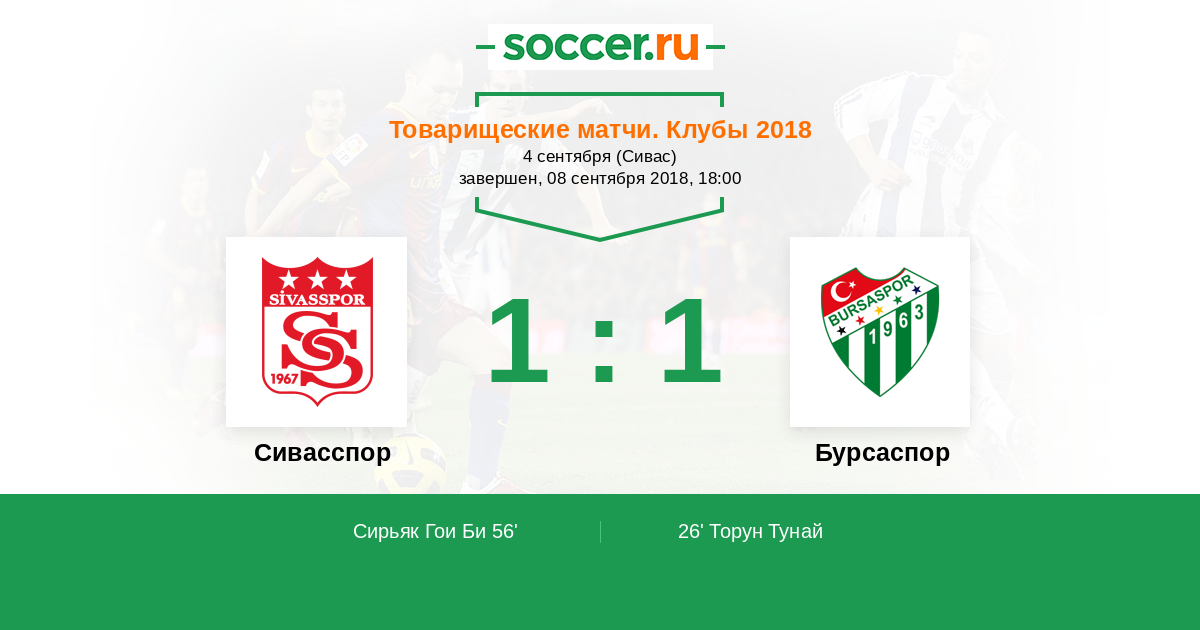 Протокол матча Сивасспор против Бурсаспор