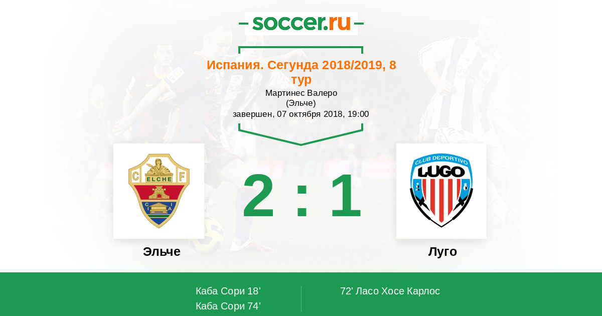 74' (2:1) Каба Сори (18) (Хуан Крус (23))