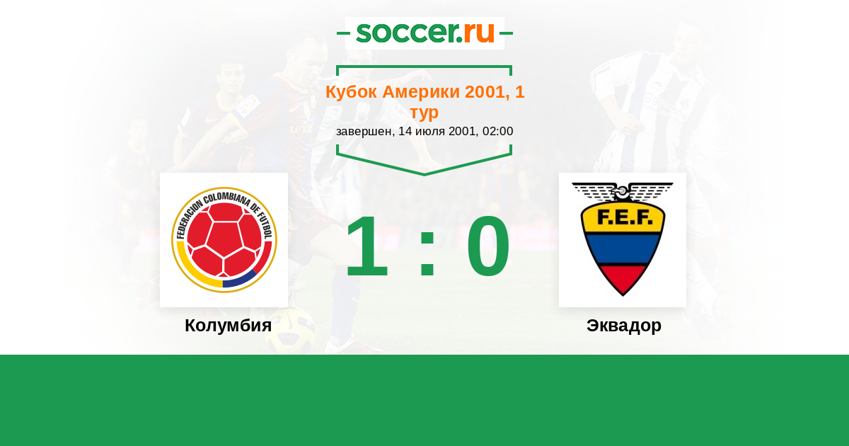 Кубок Америки 10.07.1995 Колумбия Логотип Колумбия 1:0 Логотип Эквадор Эквадор