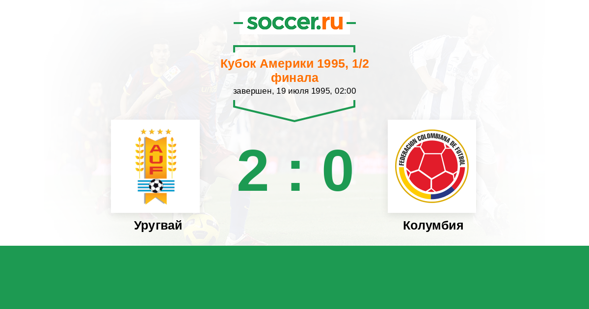 Кубок Америки 01.07.1999 Уругвай Логотип Уругвай 0:1 Логотип Колумбия Колумбия