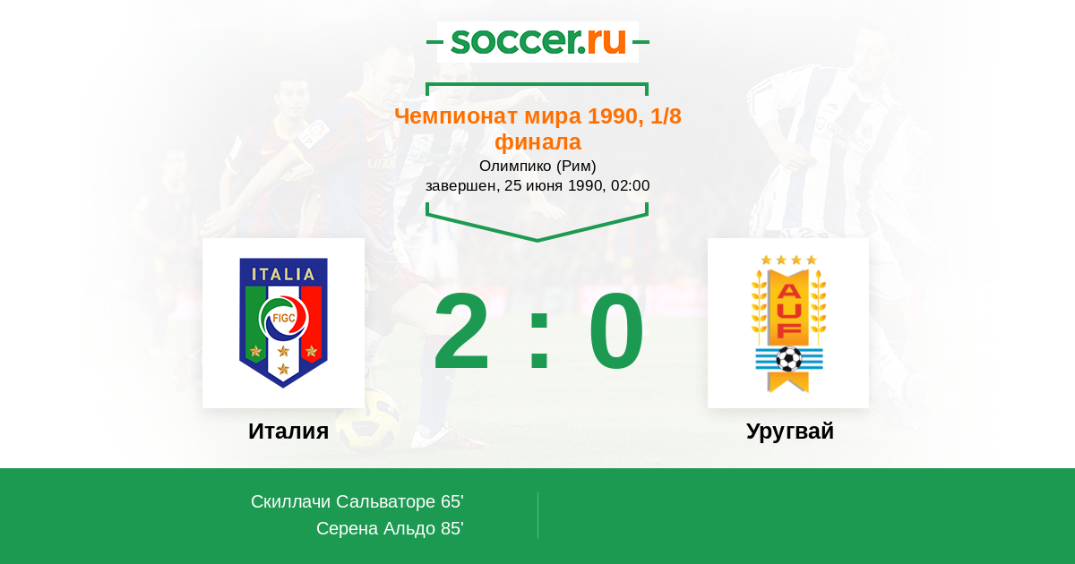 Протокол матча Италия против Уругвай
