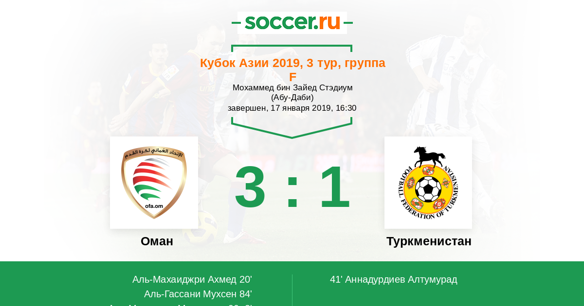 Протокол матча Оман против Туркменистан