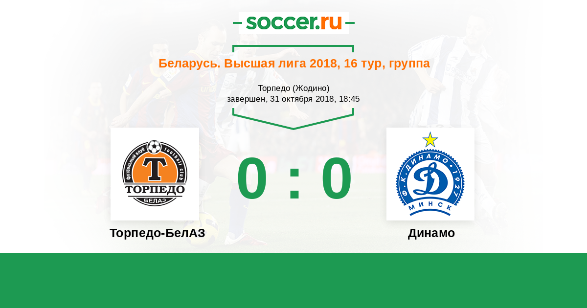 Беларусь. Высшая лига 31.03.2018 Динамо Логотип футбольный клуб Динамо (Минск) 2:1 Логотип футбольный клуб Торпедо-БелАЗ (Жодино) Торпедо-БелАЗ