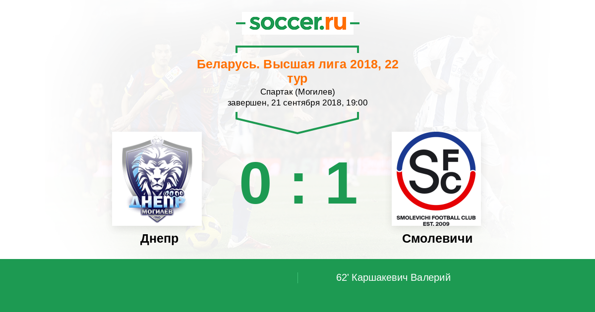 Протокол матча Днепр против Смолевичи