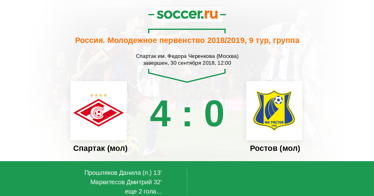 Протокол матча Спартак (мол) против Ростов (мол)
