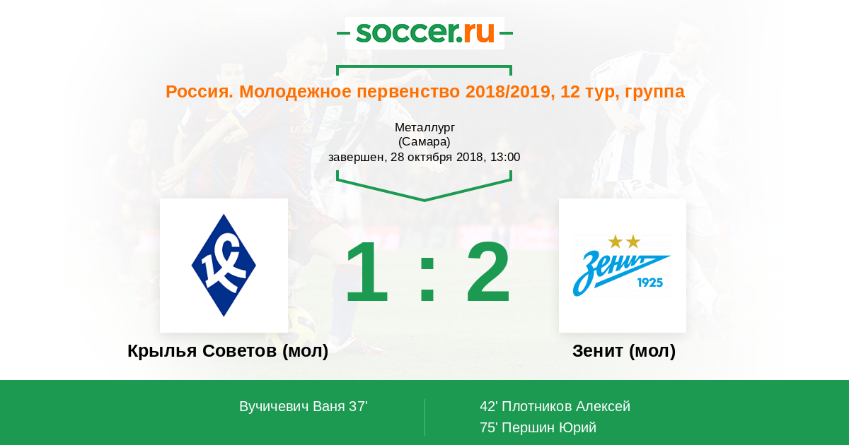 Протокол матча Крылья Советов (мол) против Зенит (мол)