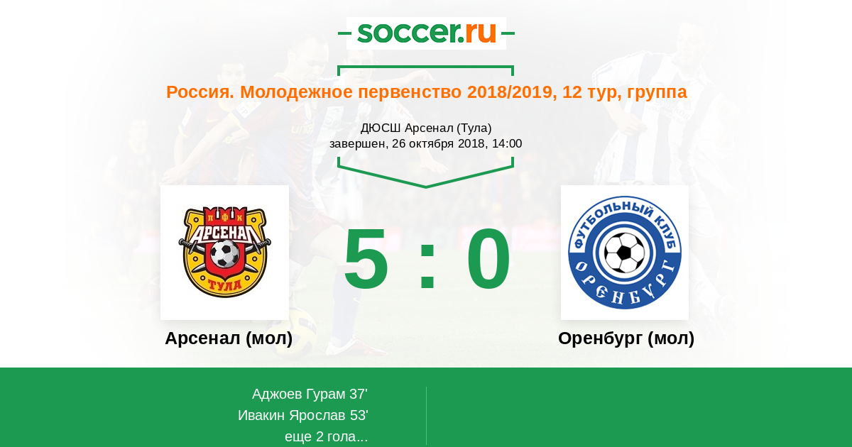 Протокол матча Арсенал (мол) против Оренбург (мол)