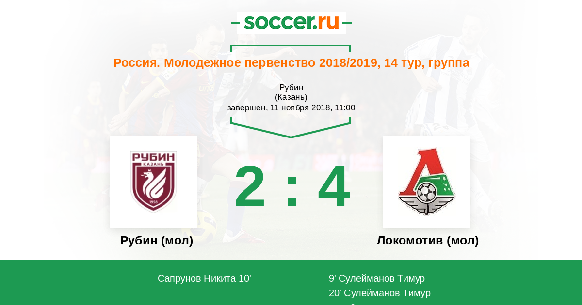 Протокол матча Рубин (мол) против Локомотив (мол)
