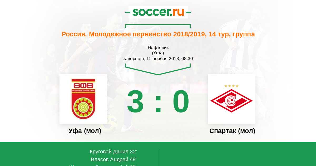 Протокол матча Уфа (мол) против Спартак (мол)