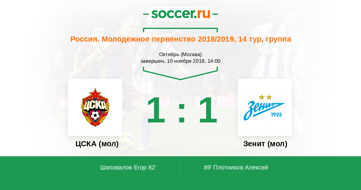 Протокол матча ЦСКА (мол) против Зенит (мол)