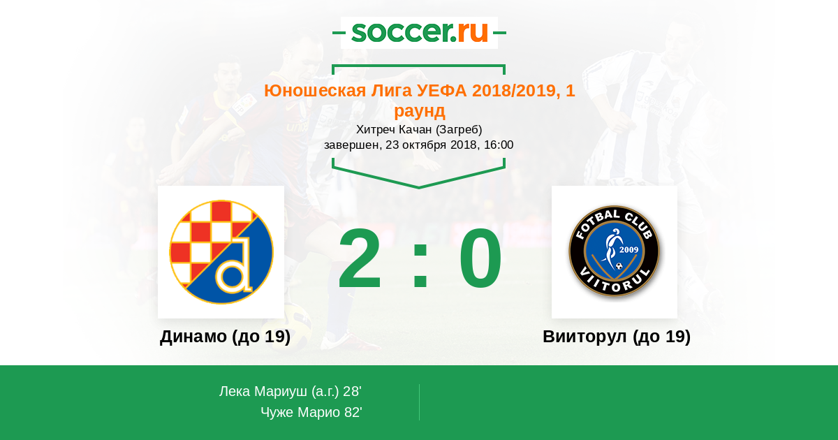Протокол матча Динамо (до 19) против Вииторул (до 19)