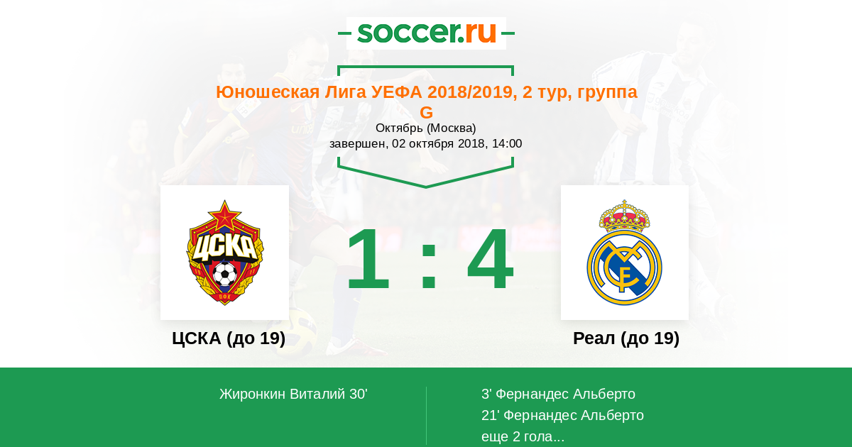 Протокол матча ЦСКА (до 19) против Реал (до 19)