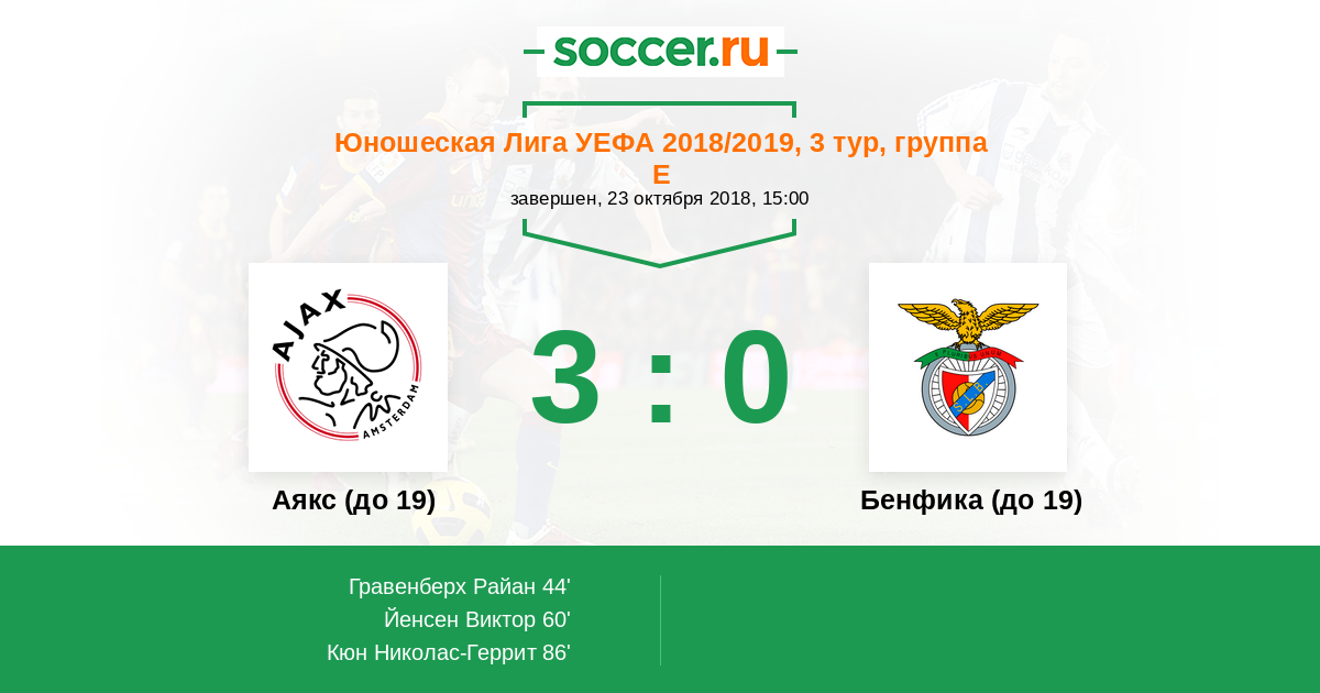 Протокол матча Аякс (до 19) против Бенфика (до 19)
