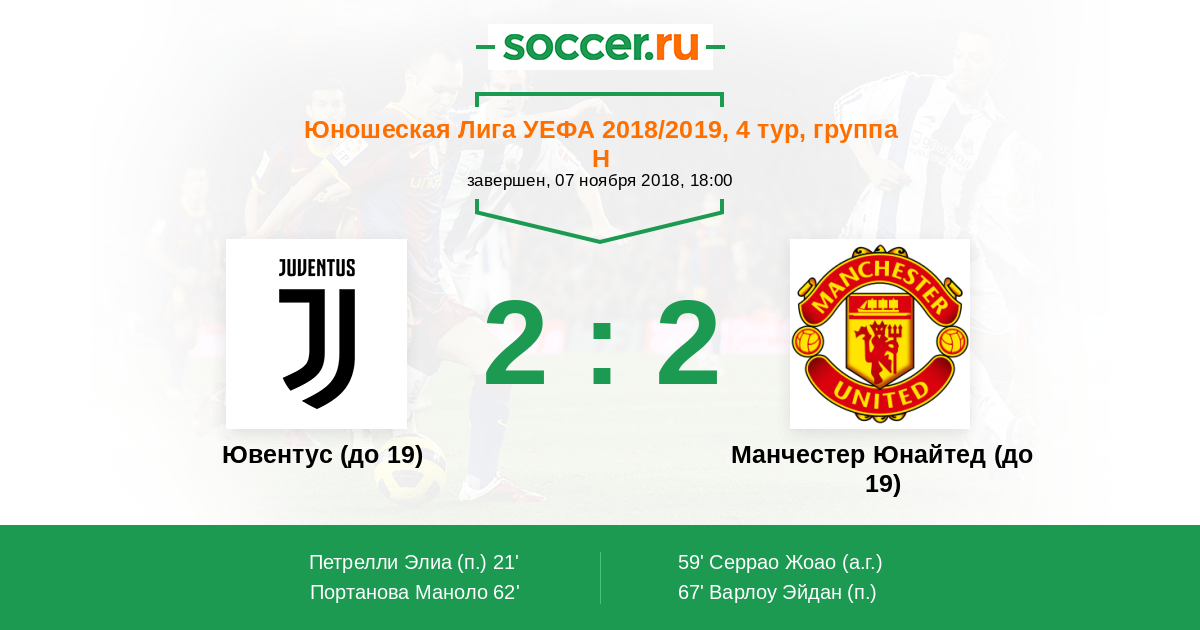 Протокол матча Ювентус (до 19) против Манчестер Юнайтед (до 19)
