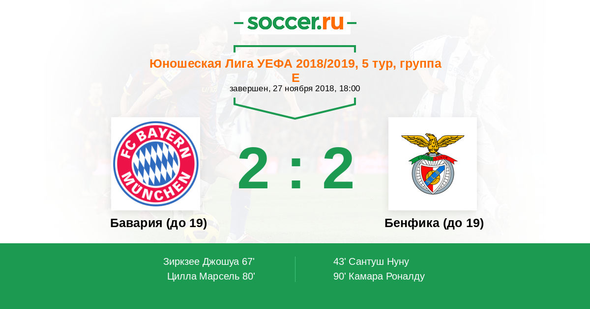 Протокол матча Бавария (до 19) против Бенфика (до 19)