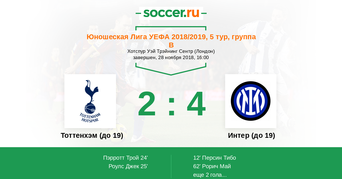 Протокол матча Тоттенхэм (до 19) против Интер (до 19)