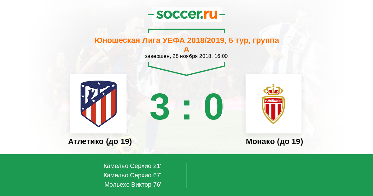 Протокол матча Атлетико (до 19) против Монако (до 19)