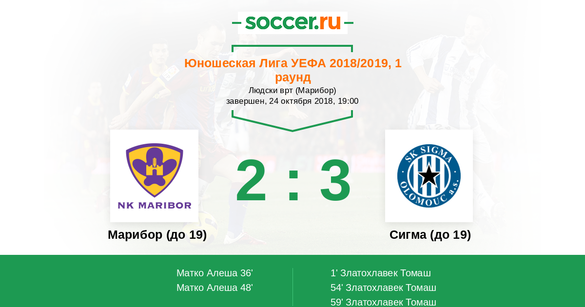 Протокол матча Марибор (до 19) против Сигма (до 19)