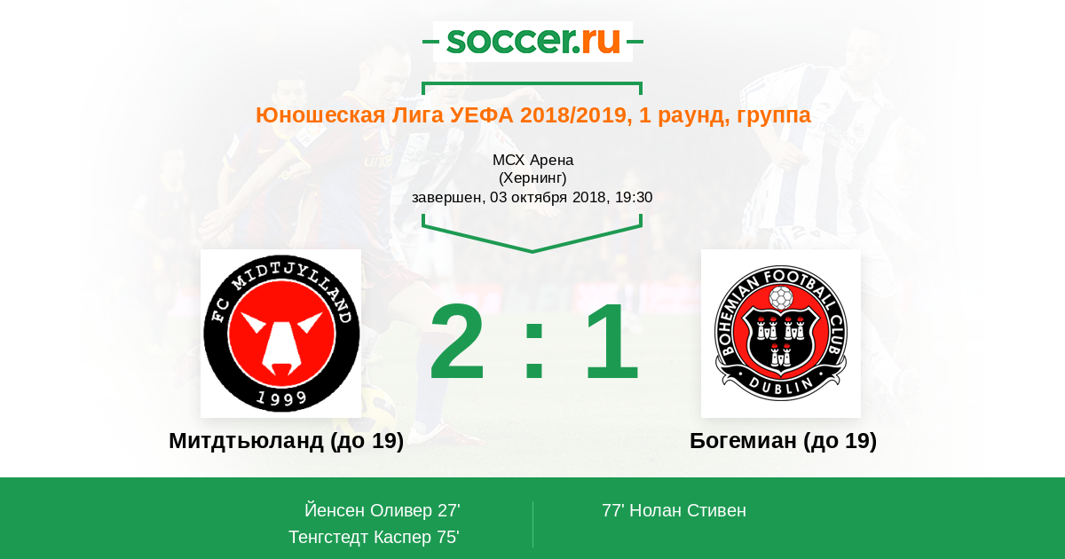 Протокол матча Митдтьюланд (до 19) против Богемиан (до 19)