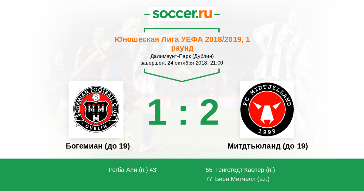 Протокол матча Богемиан (до 19) против Митдтьюланд (до 19)