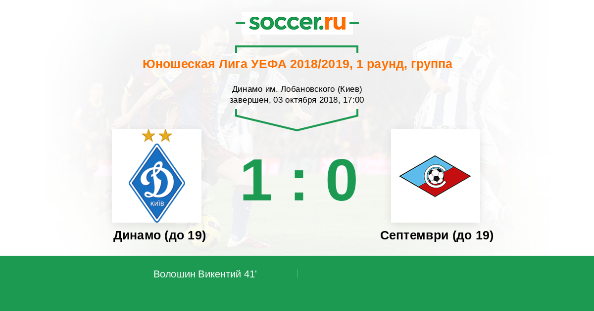 Протокол матча Динамо (до 19) против Септември (до 19)
